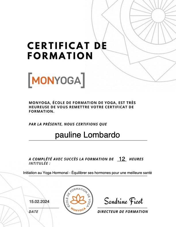 En 2019, un appel profond m’a poussée à changer de cap et à me former intensivement dans cette discipline. Aujourd’hui, je suis enseignante certifiée en Vinyasa, Yin Yoga, Yoga Hormonal et Coach en respiration.